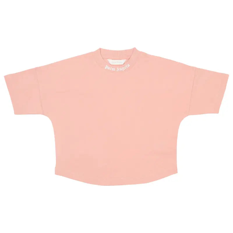 A light pink T-shirt, Palm Angels. Made in the softest cotton jersey, this laid-back, short-sleeved tee has a slouchy fit and cool dropped shoulders. Offering a skate luxe vibe, the signature Palm Angels logo is printed on the crew neck, with a raised motif on the back.