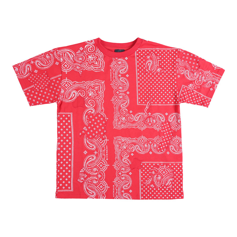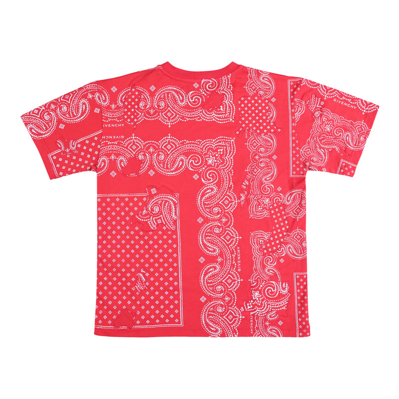 Bandana Print Short Sleeve T-Shirt red for boys and girls by Givenchy. Fabric: 98% Cotton 2% Elastane