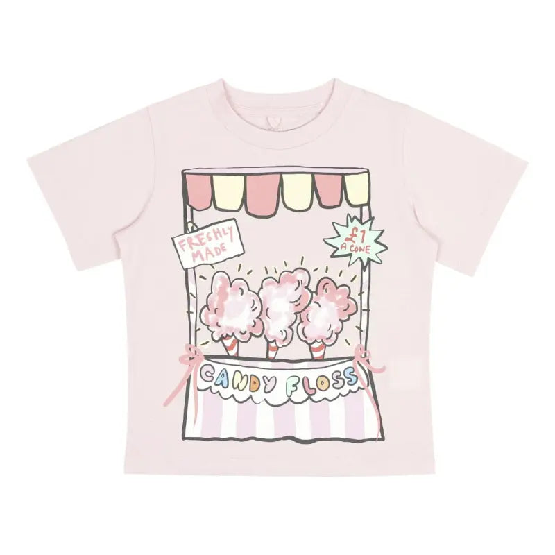 Fun pink T-shirt for girls by Stella McCartney Kids. It is made in comfortable organic cotton jersey with a relaxed fit and short sleeves. Adding the brand's distinctive playful touch, it is printed with a colourful candy floss stand graphic for a stand-out look. The Stella McCartney fit can be quite small so choose a size up if you want room to grow.