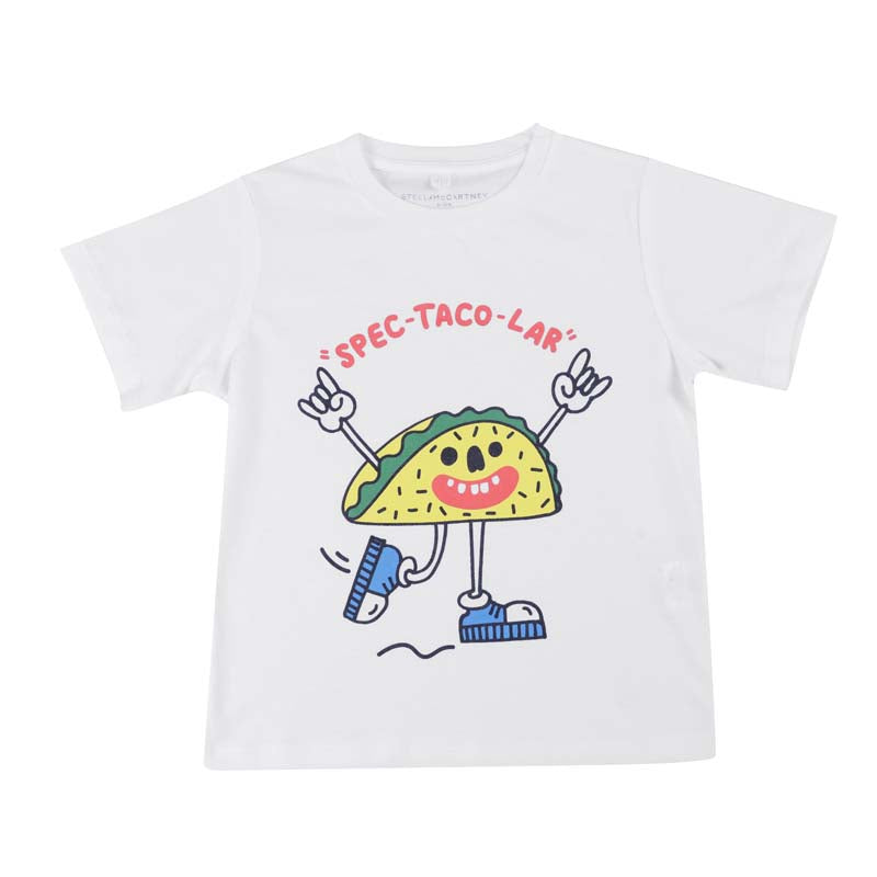 A cotton t-shirt for girls from Stella McCartney Kids, with a large “Spec-taco-lar” printed graphic on the front.