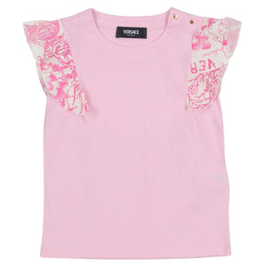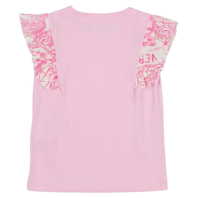 A cotton-jersey T-shirt featuring contrasting cotton poplin ruffled sleeves in the Underwater Barocco print. Snap-buttons on the shoulder allow for easy removal.