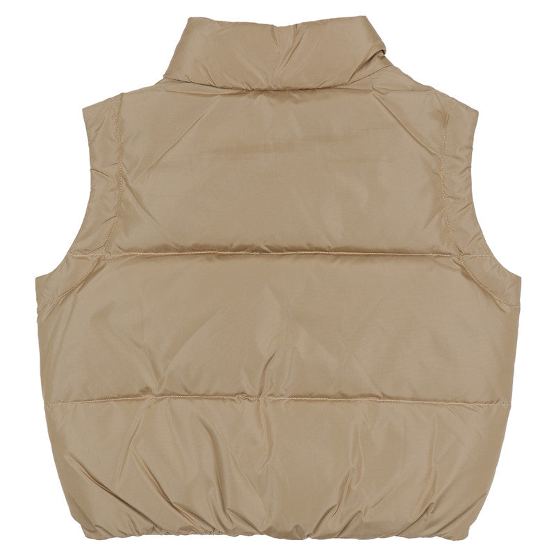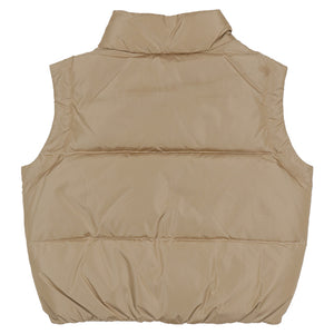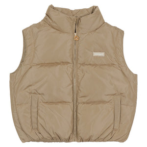 This sleeveless padded puffer vest features an embroidered Versace Logo label at the chest and a silk twill Barocco Foulard printed lining. The outerwear style is accented by a Medusa Biggie zip puller.
