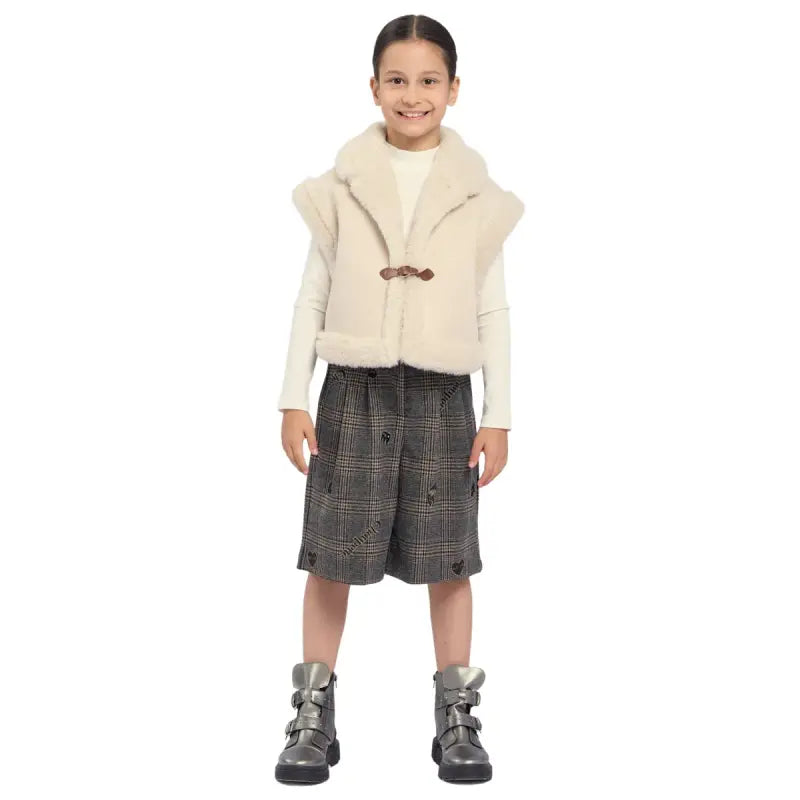 functional, but also serves as a stylish decorative element that emphasizes the overall design of the vest. The shortened length makes the vest a versatile part of multi-layered looks. The vest is ideal for both everyday wear and for creating more formal and cozy looks.