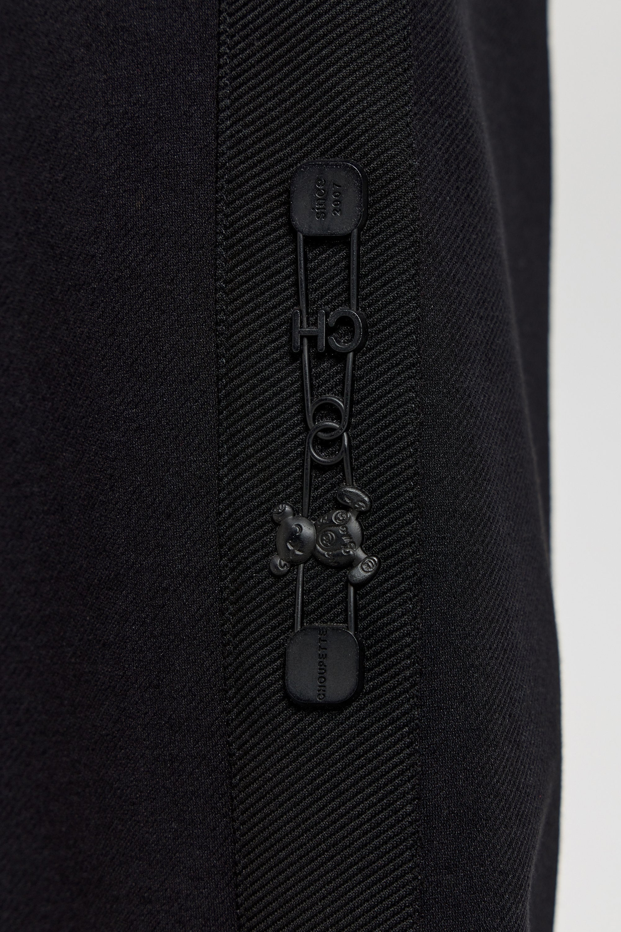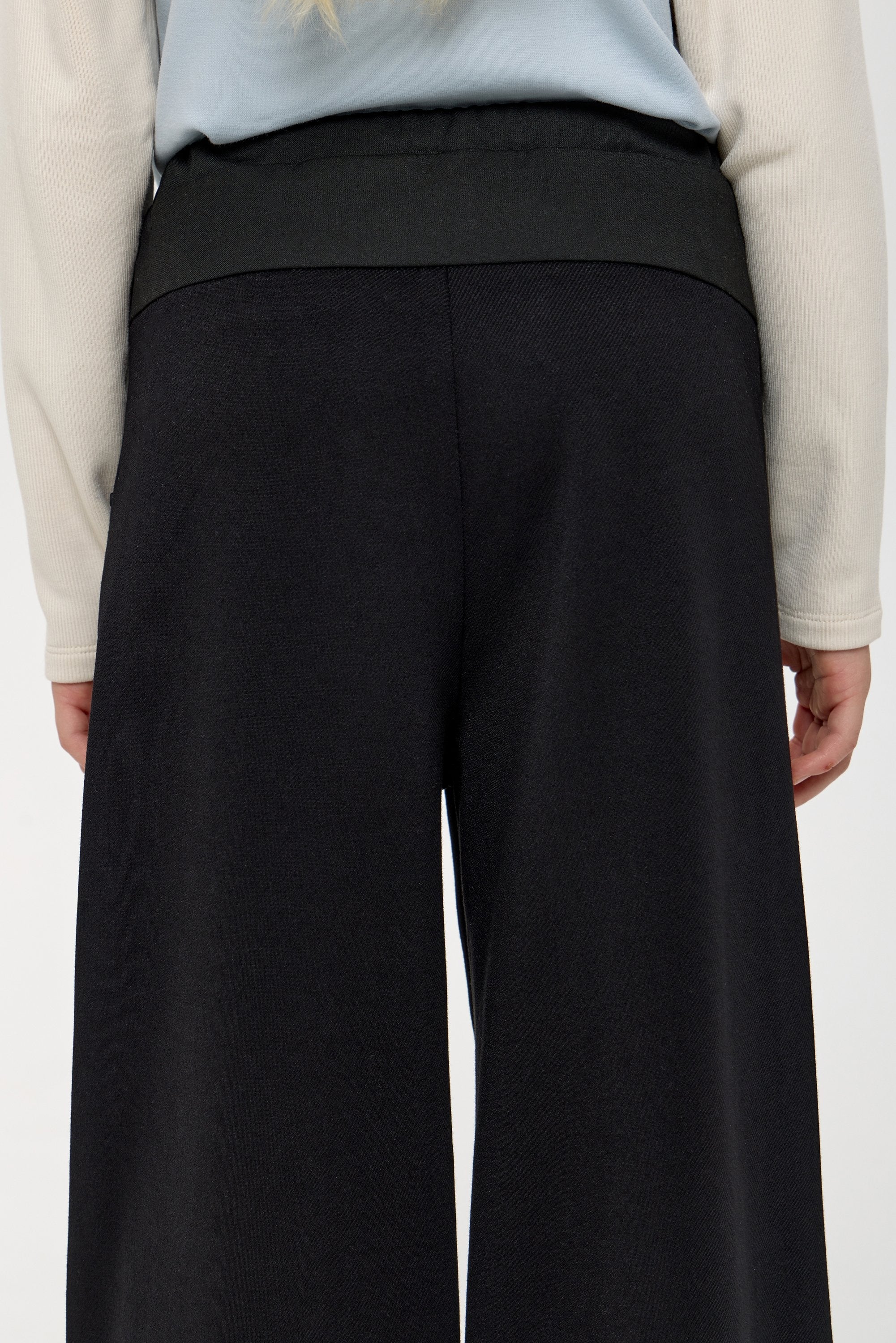 These black flared trousers for girls combine sleek design with charming detail, featuring a delicate chain applique that adds a subtle touch of elegance. Comfortable and stylish, they effortlessly elevate any outfit with a refined, contemporary flair.