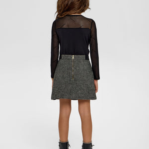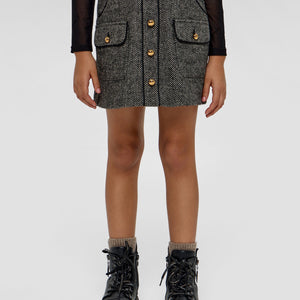 This elegant skirt features exquisite golden buttons that add a touch of refinement to any girl's wardrobe. Crafted with attention to detail, it combines classic style with a polished finish, making it perfect for special occasions or stylish everyday wear. Its graceful design ensures comfort while elevating any outfit with subtle sophistication.