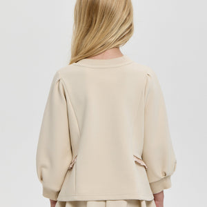 This elegant sweatshirt and skirt set for girls combines refined style with comfortable wear. The sophisticated design ensures a polished look, perfect for occasions where a graceful and coordinated outfit is desired. Crafted to offer both ease and charm, this set is a timeless addition to a young wardrobe.