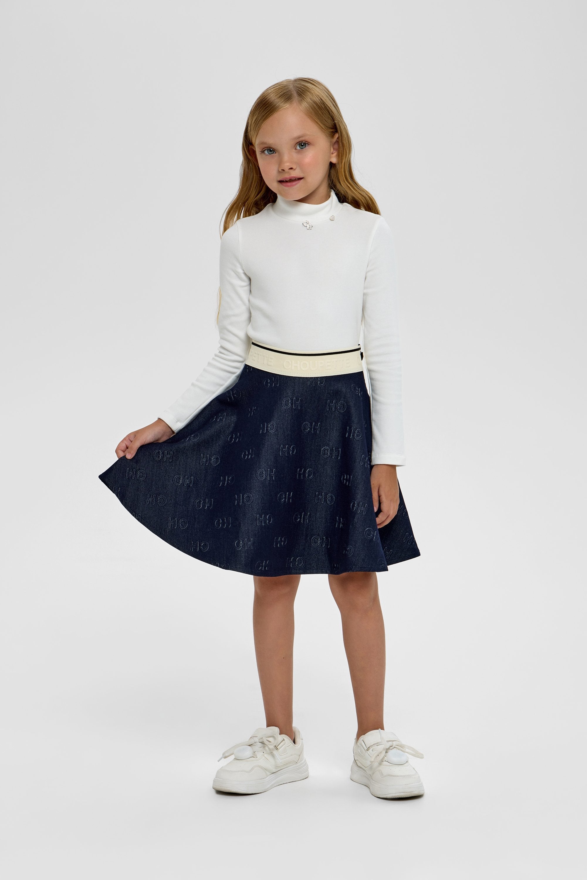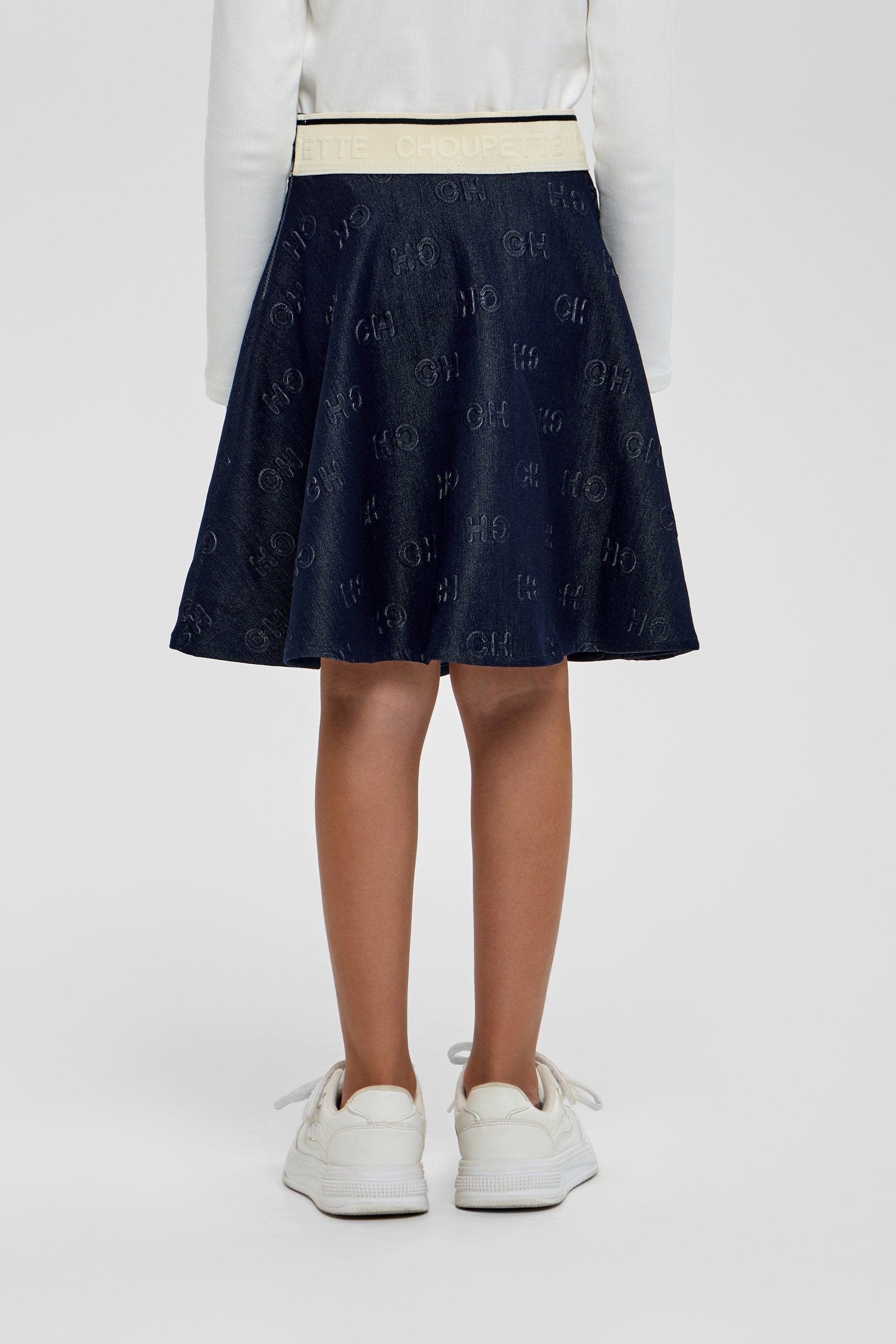 This CH branded denim skirt for girls combines classic style with modern comfort, featuring an elastic waistband for a flexible, secure fit. The durable denim fabric ensures long-lasting wear while maintaining a refined look. Perfect for elevating everyday outfits with a touch of sophistication, it offers both ease and elegance for your child’s wardrobe.