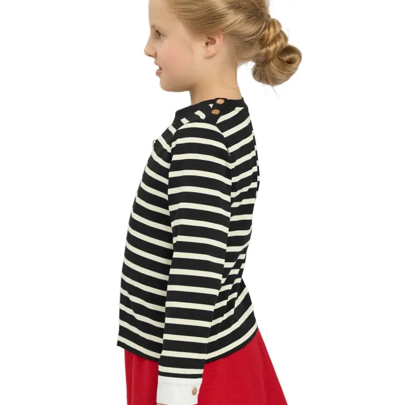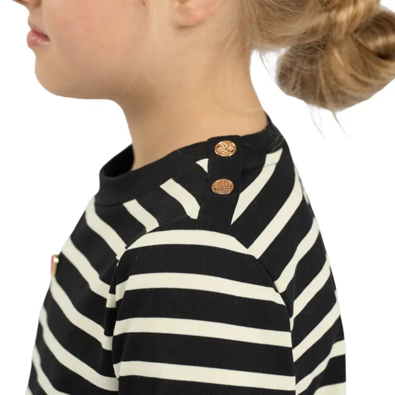 This Striped LS Tee features a classic black and white striped design, making it a timeless addition to any girl's wardrobe. With its versatile style, this tee can easily be dressed up or down for any occasion. Stay stylish and comfortable with this must-have pieceed LS Tee, beige(146)