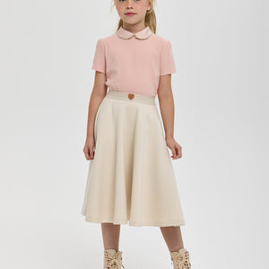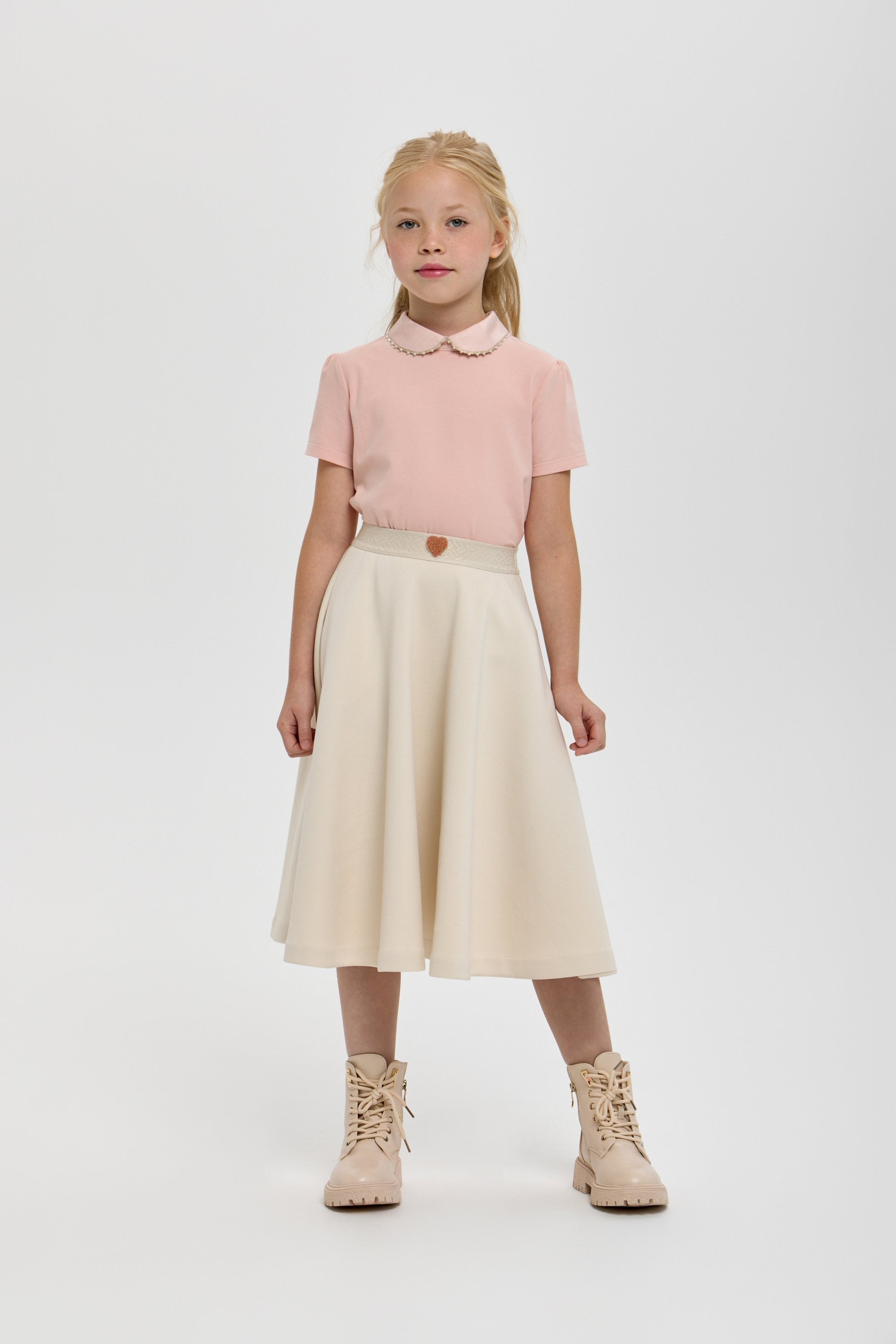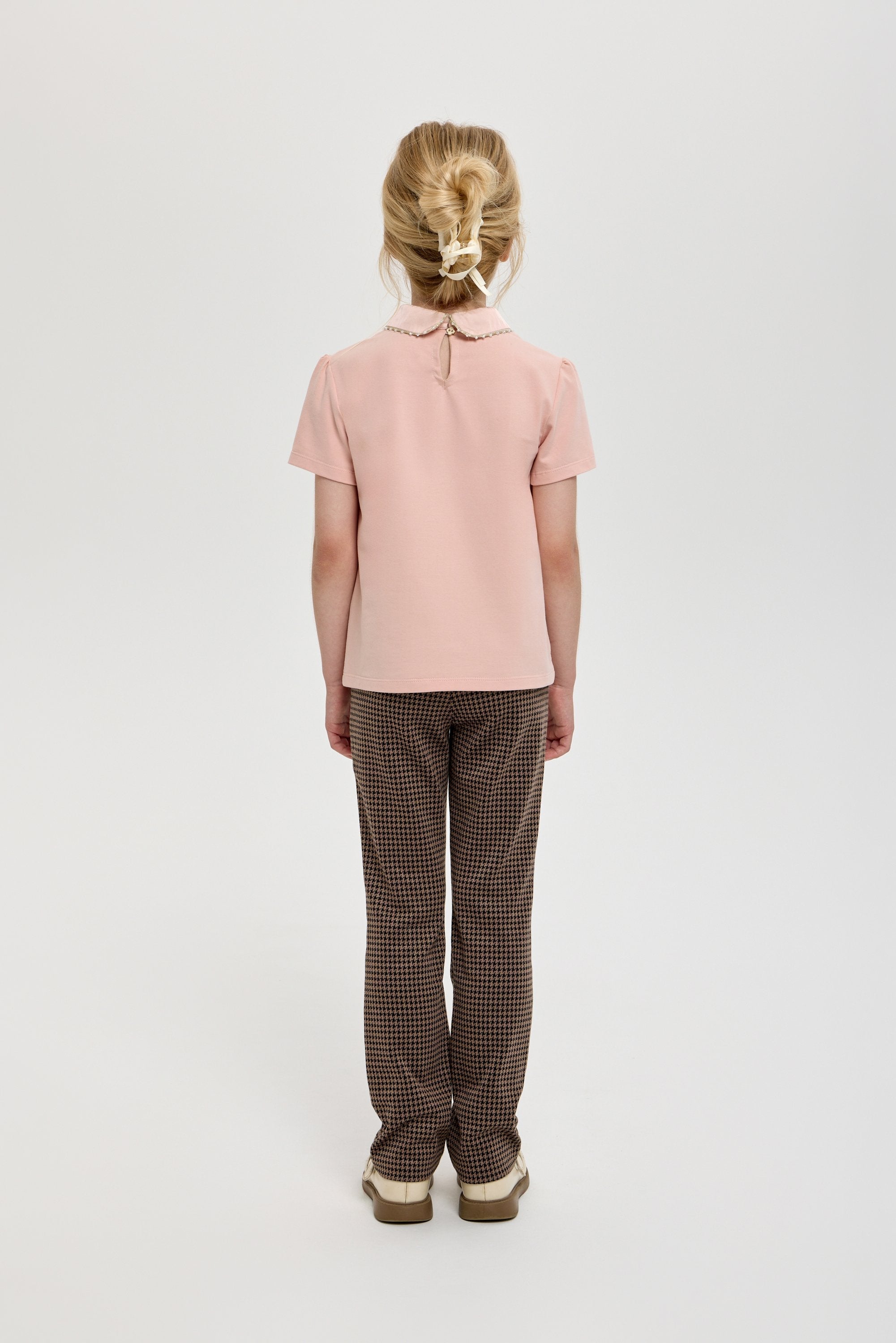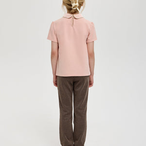 This elegant peach polo for girls combines classic tailoring with a soft, flattering hue. Designed for comfort and style, it offers a polished look suitable for both casual and formal settings, making it a versatile addition to any refined wardrobe.
