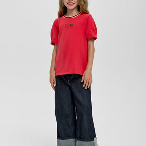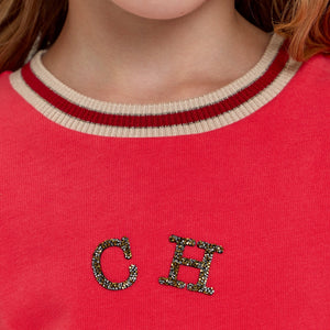 This elegant red T-shirt for girls features a refined CH applique, combining simplicity with a touch of distinctive style. Crafted to offer comfort and effortless wear, it’s perfect for adding a polished yet casual element to any young wardrobe. Ideal for occasions where subtle sophistication is desired.