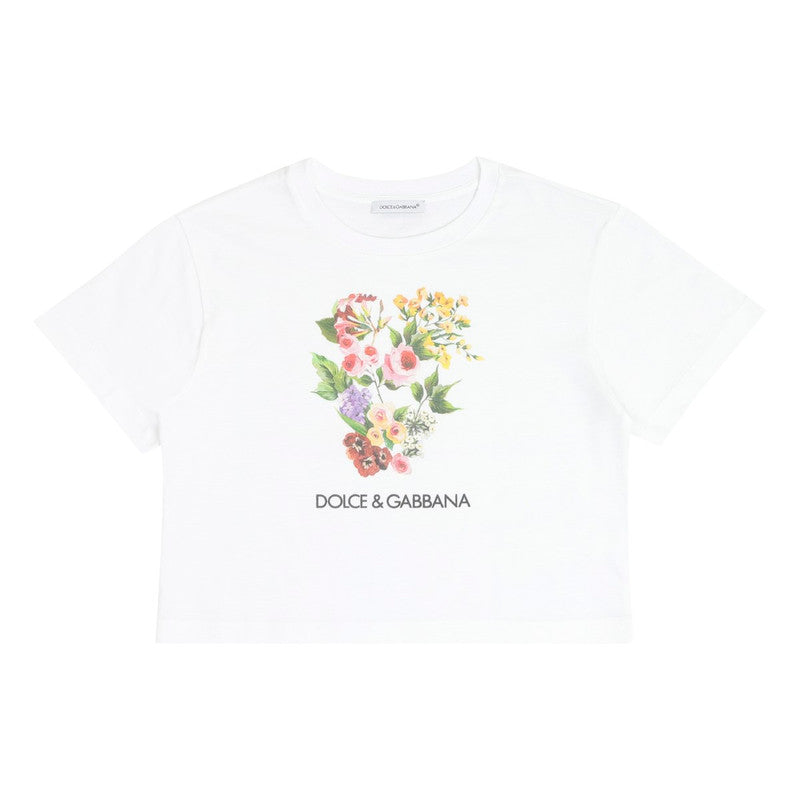Cotton jersey T-shirt with mixed floral print and the Dolce&Gabbana logo: