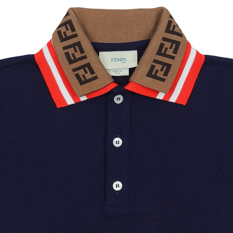Fendi embody high quality craftsmanship designs with refined elegance. This boys Yale polo shirt reconceptualises streetwear aesthetics into stylish prototypes. Engineered in beautiful high quality with a brown collar which is adorned with red and white stripes and the iconic designer logo.