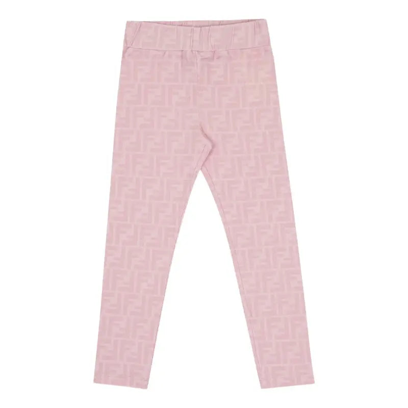 Pink jersey junior leggings with all-over tone-on-tone FF logo print.