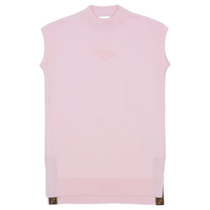 An elegant, long-line Fendi cashmere dress for girls in delicate pink, featuring a subtle logo and signature FF detailing on the hem.