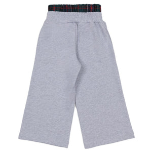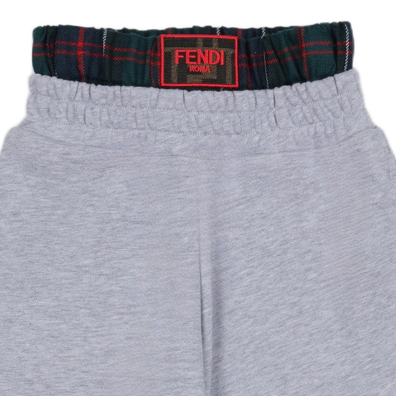 Relaxed grey wide-leg sweatpants featuring a chic, contrasting tartan and Fendi logo elastic waistband.