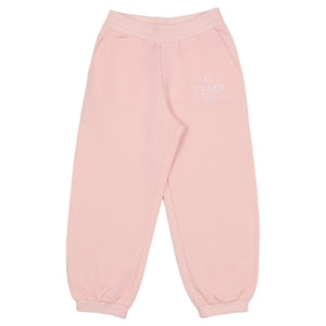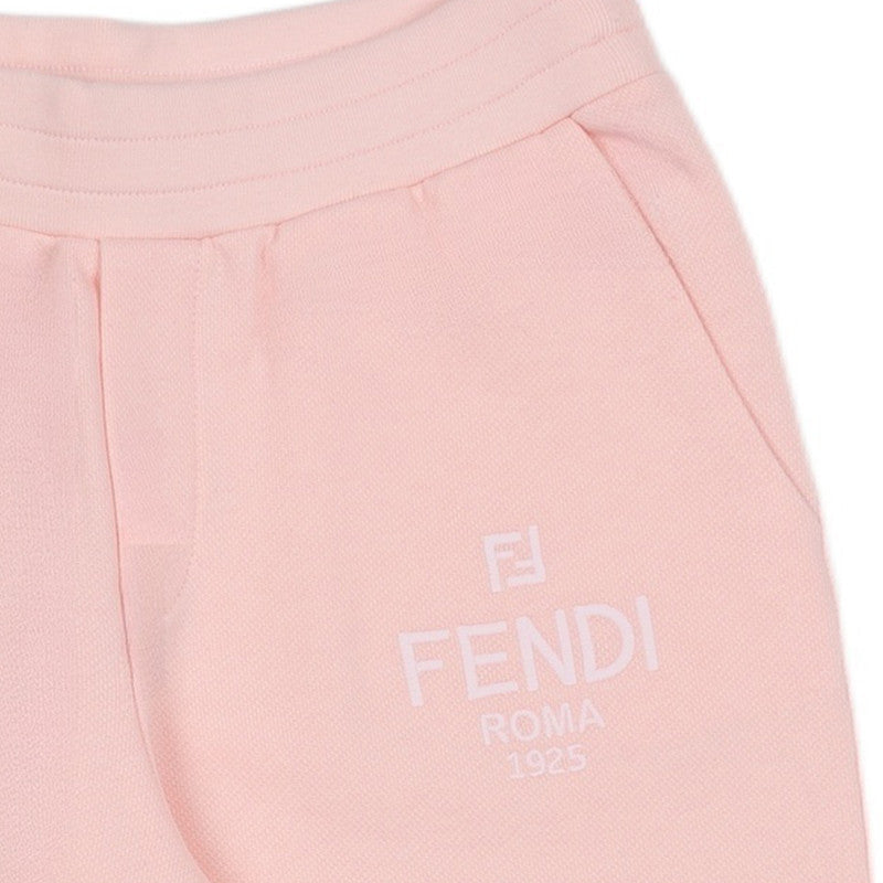 Ultra-soft light pink joggers featuring a comfortable elastic waist and cuff, highlighted by a subtle Fendi Roma logo print.