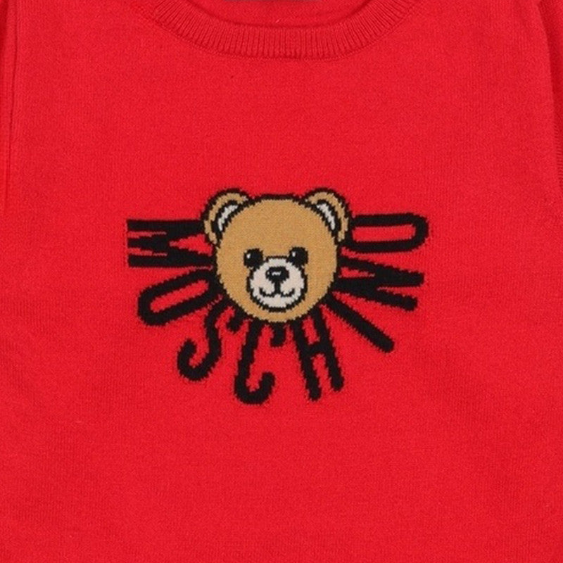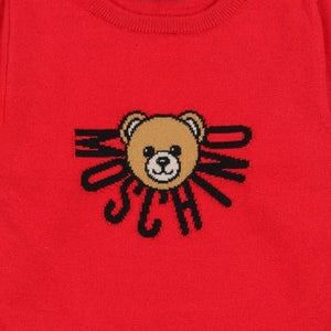 Moschino Red Teddy Bear Intarsia Knit Dress