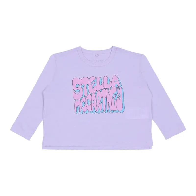 Stella McCartney graphic-print long-sleeve cotton T-shirt lilac cotton jersey texture graphic print to the front