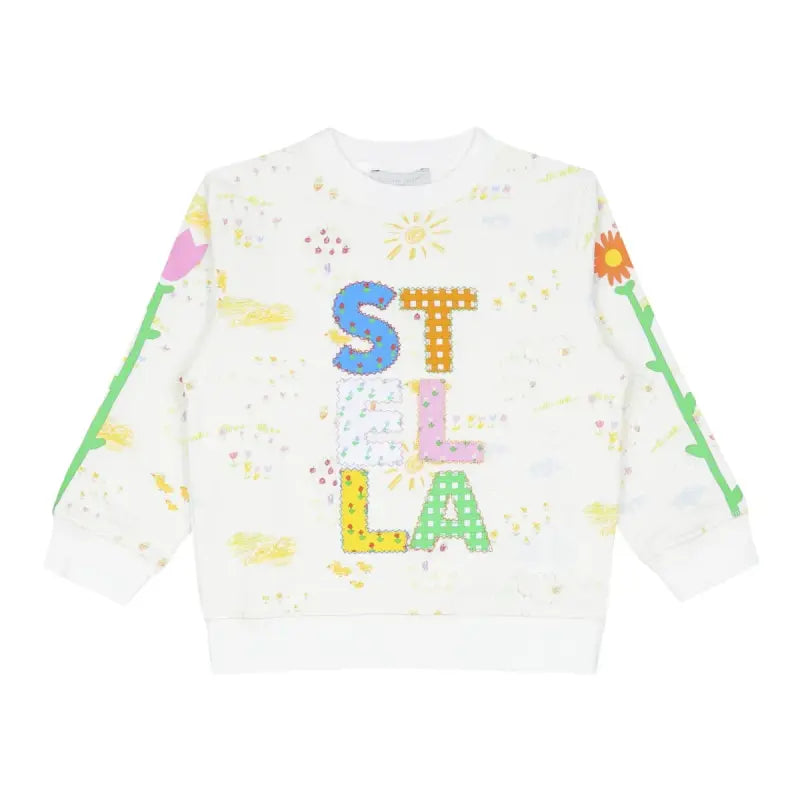 Playfully blending style and sustainability for the next generation of eco-warriors. This sweatshirt exemplifies the joyful conscious luxury Stella stands for. Spun from organic cotton, its then appliquéd with Stella typography.