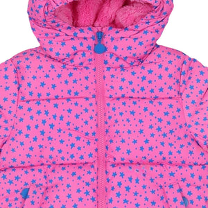 Distinctive blue zipper and snap fastenings add a unique accent, complementing both function and design. Crafted from recycled polyester, this jacket honors sustainability while maintaining luxury, comfort, and Stella McCartney Kids' trademark sense of joyful style.