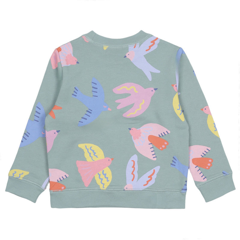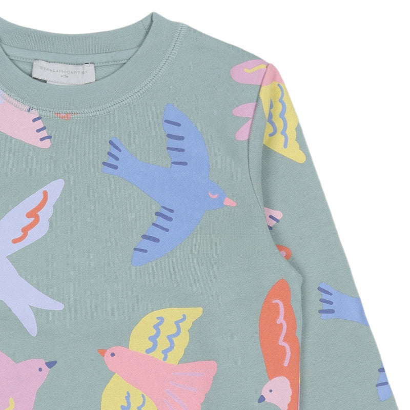 Stella McCartney Green Sweatshirt With Multi Birds Printed