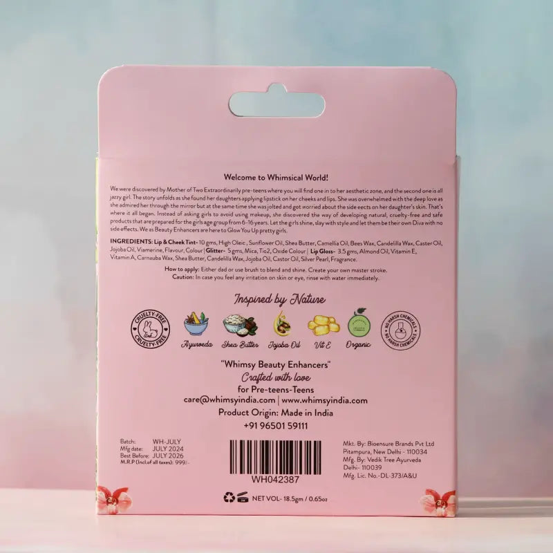 Nature Inspired:- Enriched with nourishing ingredients like almond oil, vitamin E, shea butter and jojoba oil to nourish and smoothness. 100% chemical free, non-toxic and cruelty-free makeup for kids.