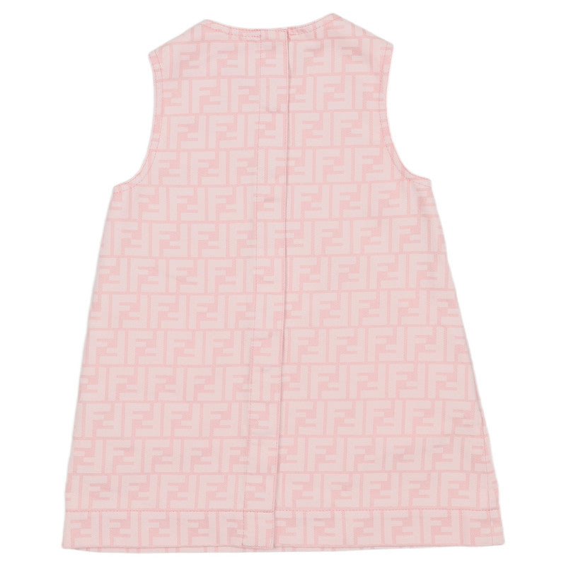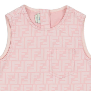 A stylish sleeveless Fendi dress in light pink with an all-over tone-on-tone FF monogram pattern. Perfect for comfortable warm-weather wear.