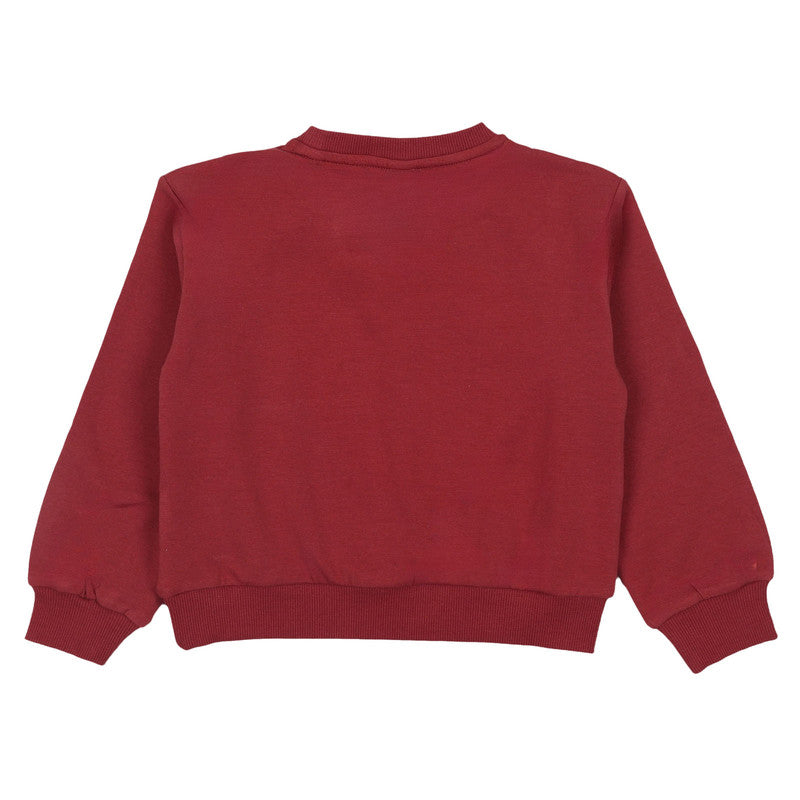 Elevate her casual wear with this rich, rusty red sweatshirt. Made for comfort, it's beautifully accented with a sophisticated sheer bow detail at the neckline, blending cozy fabric with chic style.