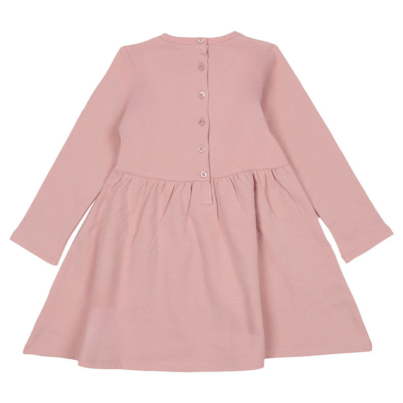 This delightful IDO dress features a soft pink jersey fabric, a comfortable gathered waist, and a sparkling rhinestone bow appliqué. Perfect for special occasions or everyday sweetness.