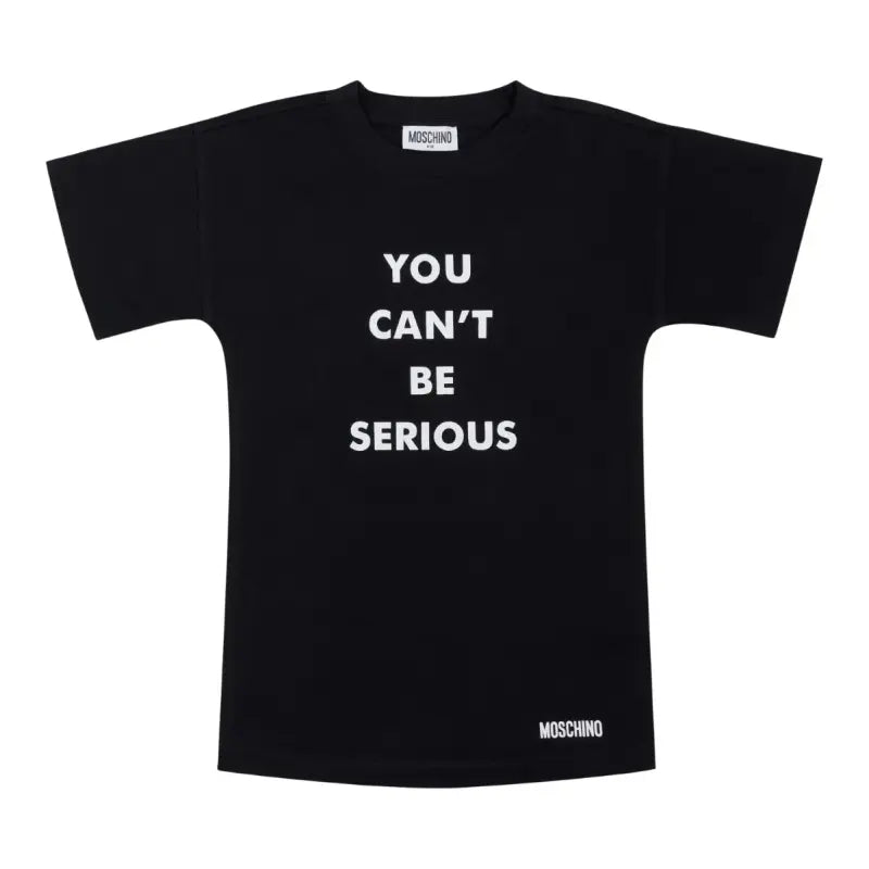 Moschino blends the comfort of a T-shirt with the playful charm of a dress, making this perfect for playdates and intimate get-togethers. Crafted from soft jersey, this dress ensures a breathable and comfortable fit. Finished with a cheeky slogan print