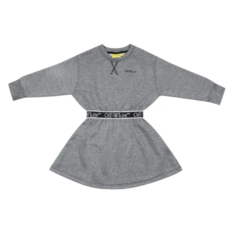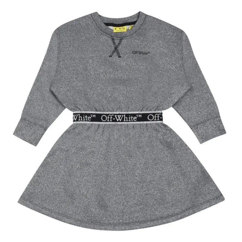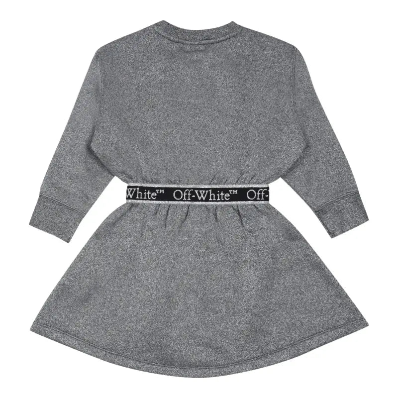 This long-sleeved dress features a glittery finish with a matching logo waistband. Cotton blend.