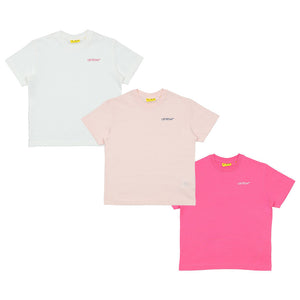 This essential three-pack includes Off-White T-shirts in white, light pink, and hot pink. Each shirt features a subtle embroidered logo on the chest, offering versatile, iconic style for everyday wear.