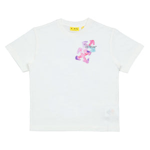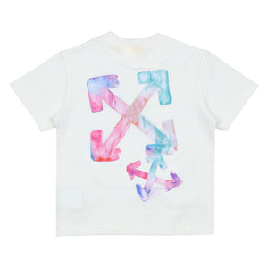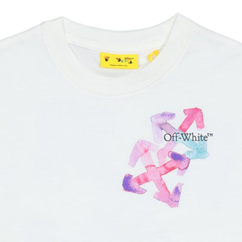 Ivory cotton T-shirt for girls by Off-White, made in soft, comfortable jersey. It has a colourful watercolour-style arrows logo on the front and back for instant brand appeal, in shades of pink and blue.