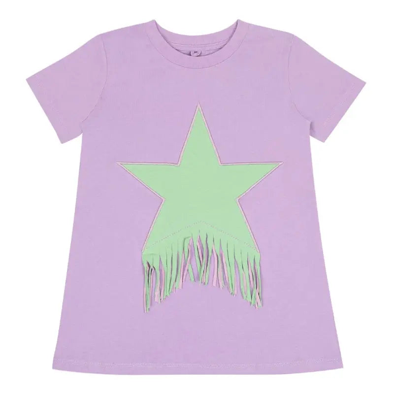 Stella McCartney incorporate excellent construction and vivid imagery into their beautiful aesthetics. This girls purple t-shirt dress captures the label's passion for sleek, unparalleled innovation. Crafted with green front star embroidery via a rhinestone and fringe application.