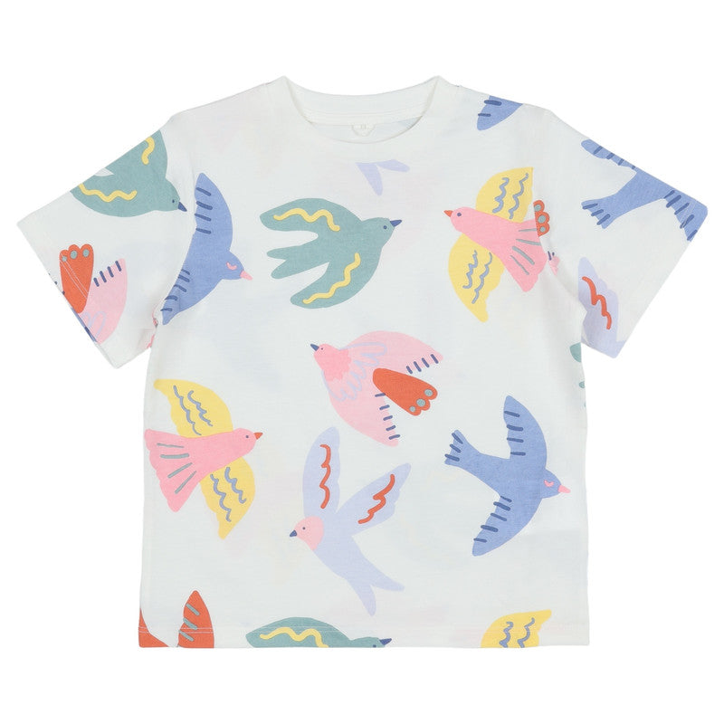 Stella McCartney White T-Shirt With Multi Birds Printed