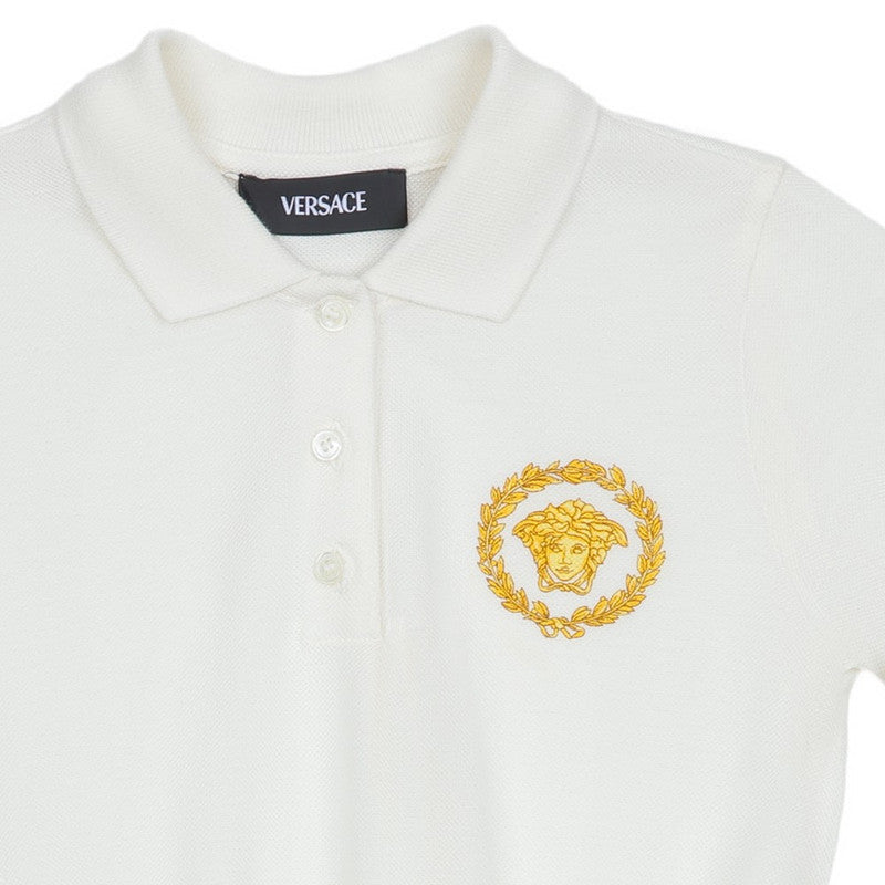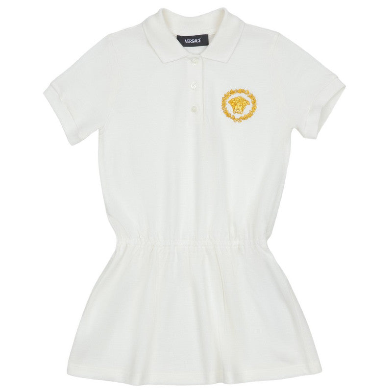 This short-sleeved polo dress is crafted in breathable cotton Pique. It features a Medusa print at the chest, buttoned placket and an elastic waistband.