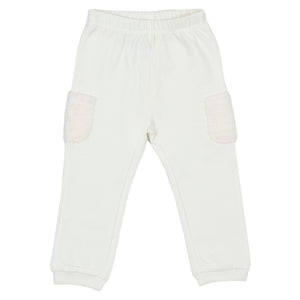 Tracksuit iDO made of warm and soft fabric. The model includes a sweatshirt and pants. The sweatshirt has a back opening with buttons, and the pants feature an elastic waistband and large side pockets.