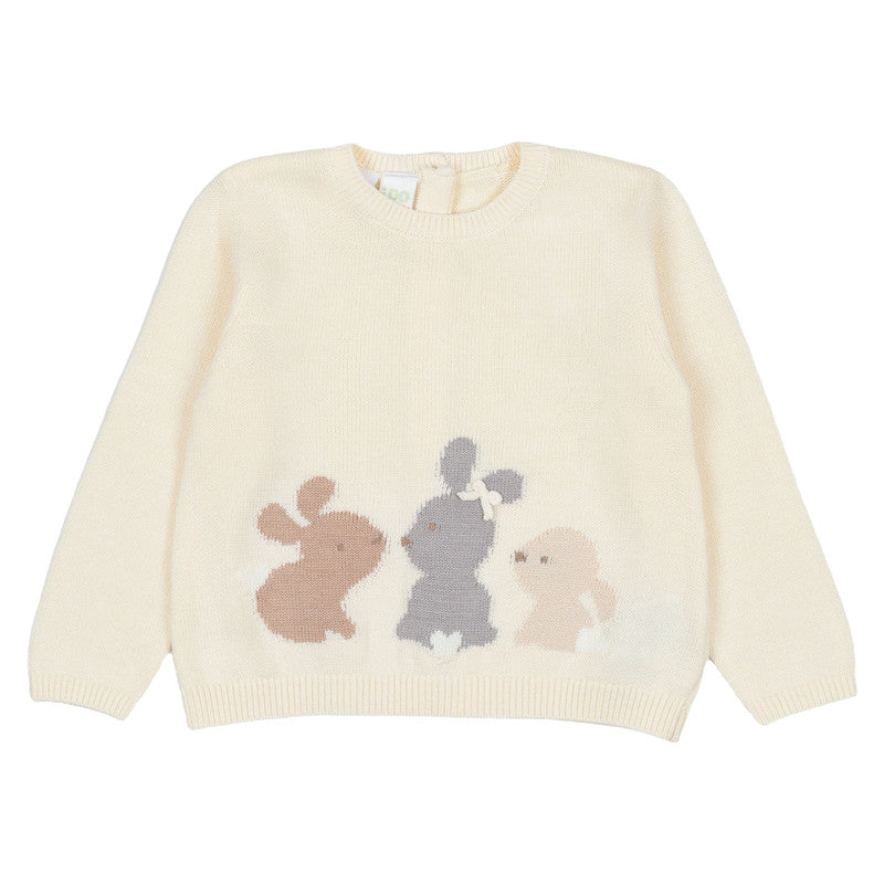 iDO Off White Sweater with intarsia graphic of three bunnies