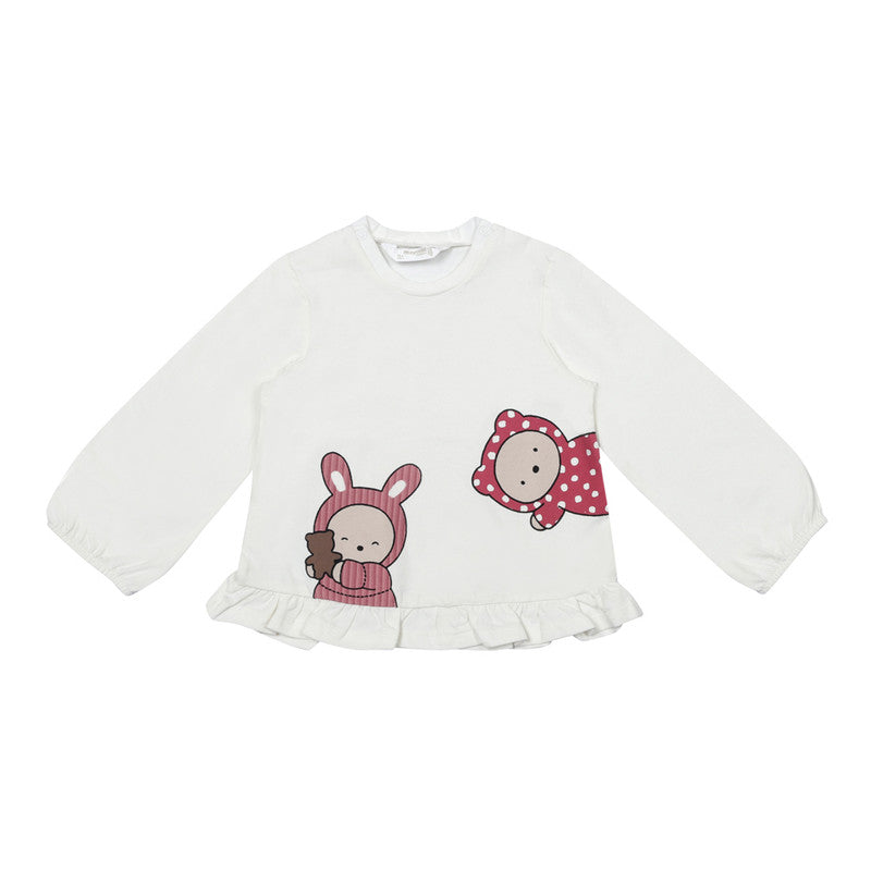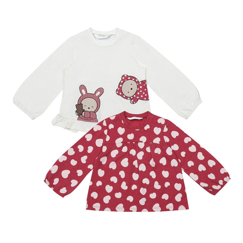Long sleeved T-shirt for newborn. Back button closure at the collar for easy adjustment. Made from soft elasticated cotton fabric. Patterned design. By choosing our cotton products you are supporting our investment in the Better Cotton initiative. This product is obtained through a mass balance system and therefore may not contain Better Cotton.