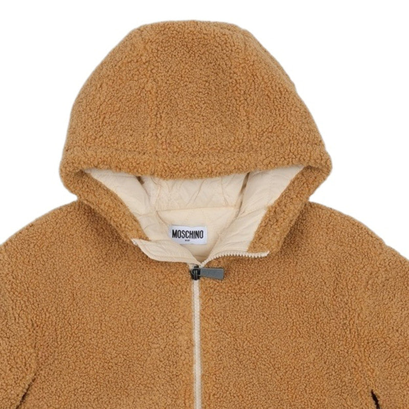 Stay Cozy And Stylish With This Moschino Hooded Jacket. Made From A Soft, Teddy Bear-Like Fleece, This Jacket Features A Full-Zip Front, A High Neck, And A Quilted Lining. It Includes Two Contrasting Front Pockets, One With The Moschino Logo, And Is Finished With A Signature Teddy Bear Patch On The Sleeve.