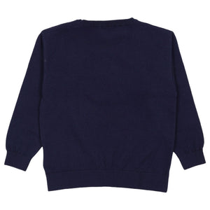 Keep Them Cosy In This Navy Blue Moschino Kids Sweater. It Features A Soft Knit And A Striking Intarsia-Knit Teddy Bear Face Surrounded By The Moschino Logo On The Chest.