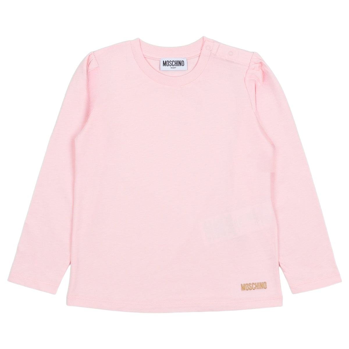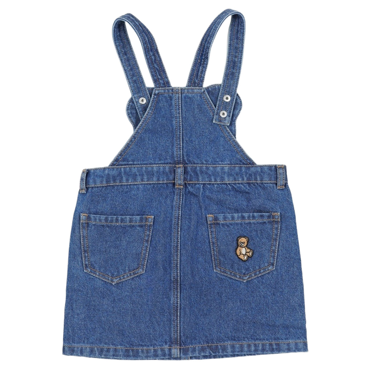 This Adorable Moschino Set Combines A Soft, Light Pink Long-Sleeve Top With A Pair Of Blue Denim Overalls. The Top Has A Comfortable Fit With A Snap-Button Shoulder Closure. The Overalls Feature A Cute Teddy Bear-Shaped Bib And A Subtle Moschino Logo, Creating A Charming And Stylish Outfit Perfect For Playdates.