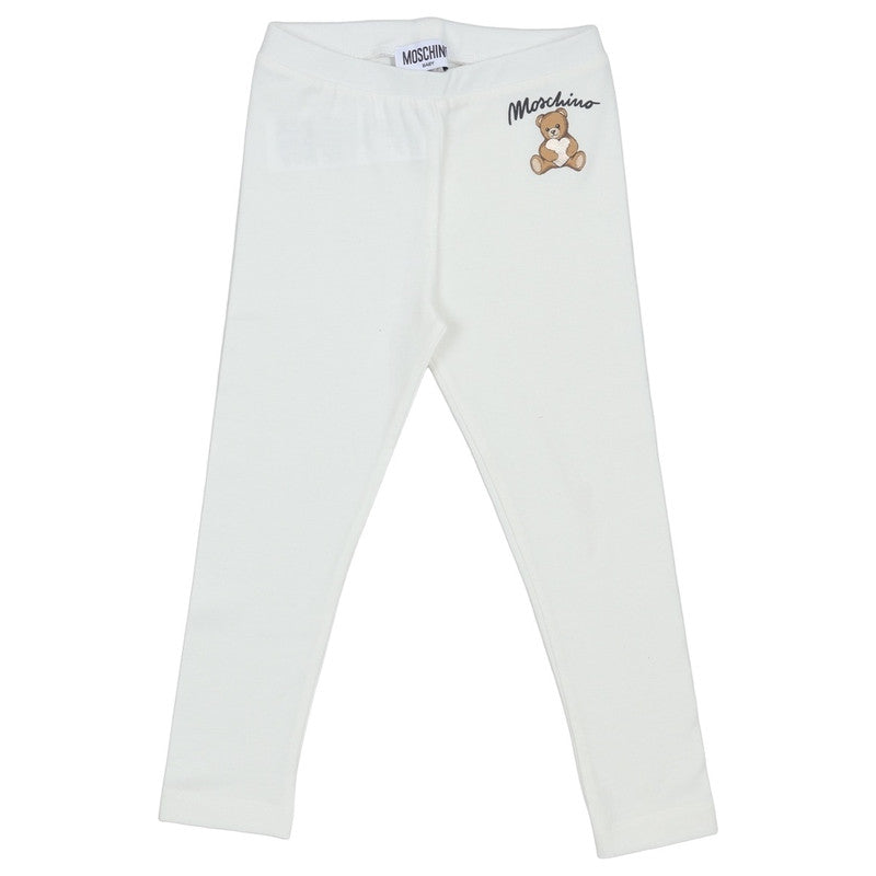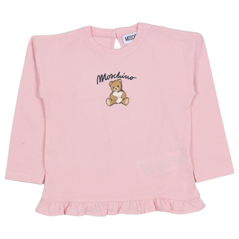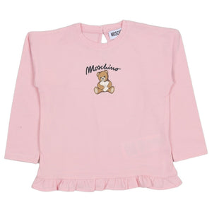 Moschino Kids Pink Teddy-Print Ruffled Tracksuit Featuring A Long-Sleeve Top With Playful Ruffled Hem And Teddy-Bear Motif, Paired With White Leggings. Finished With An Elasticated Waistband For Comfort And Ease Of Movement.