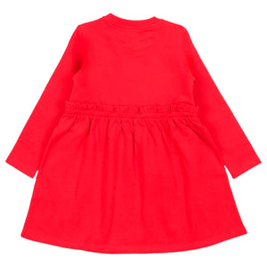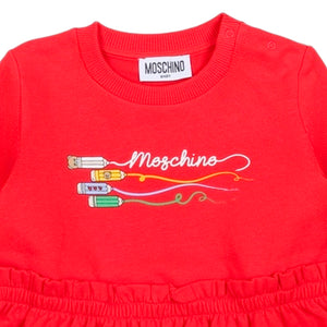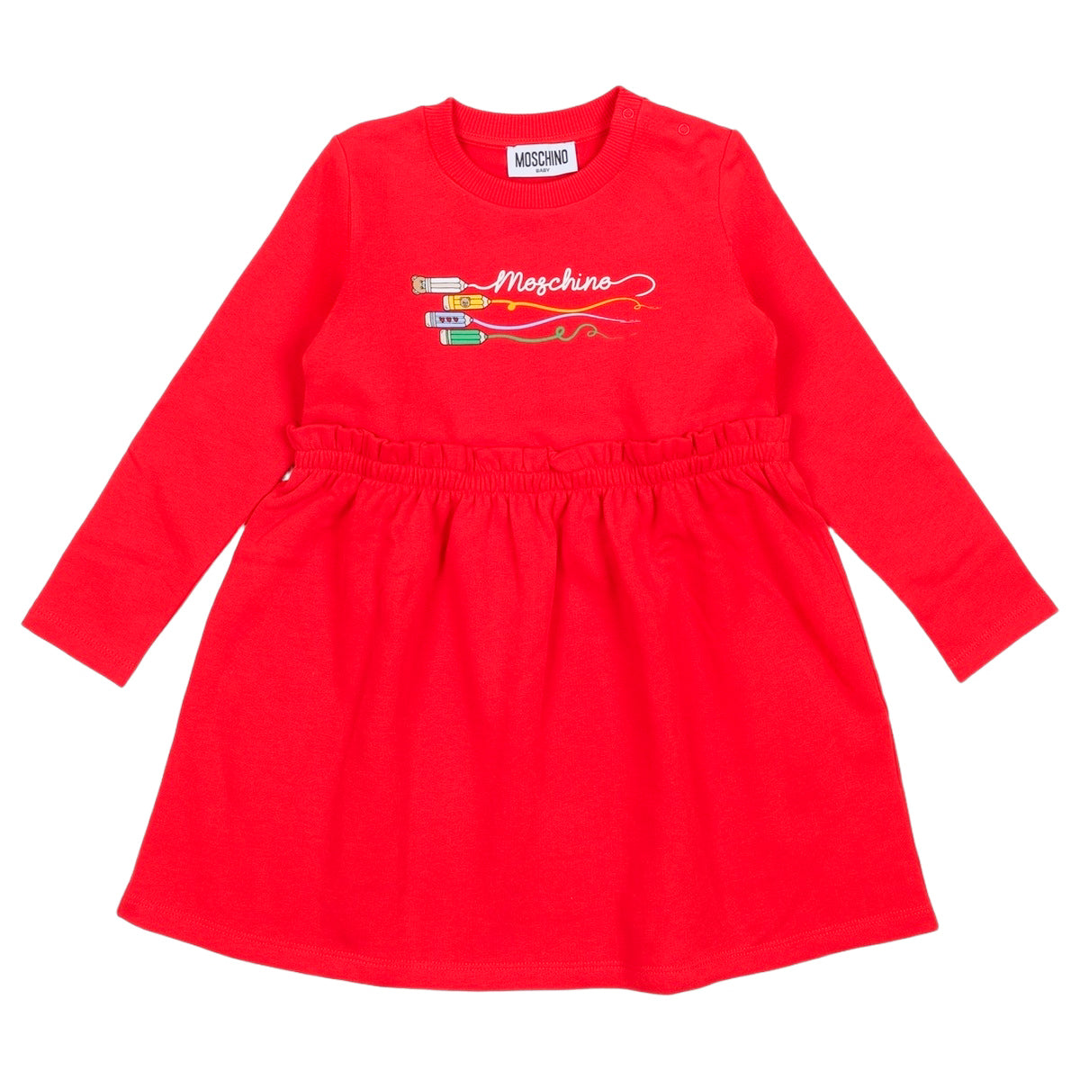 This Vibrant Red Long-Sleeve Dress From Moschino Kids Is Both Playful And Comfortable. Made From Soft Cotton, It Features A Unique Pencil Print On The Chest With The Moschino Logo In A Playful Script. The Gathered Ruffle Waist Adds A Sweet Touch, While The Snap-Button Shoulder Closure Makes Dressing Your Little One A Breeze. It’S Perfect For Adding A Pop Of Color To Any Occasion.
