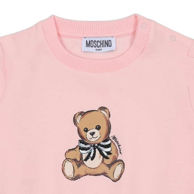 Moschino Peach Teddy Bear-Print Ribbed Cuffs Sweatshirt