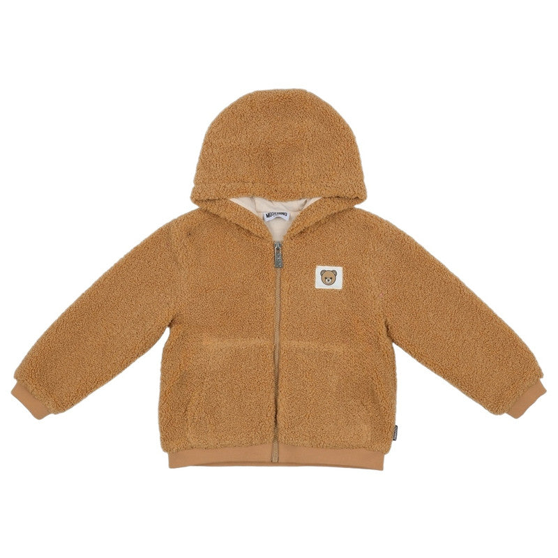This Cozy And Luxurious Brown Faux Fur Jacket From Moschino Is A Perfect Way To Keep Your Little One Warm. The Jacket Features A Soft, Plush Texture With Horizontal Seams And A Comfortable Hood. A Sweet Moschino Teddy Bear Patch On The Chest Adds A Signature Designer Touch. With A Hidden Front Closure, This Jacket Is Both A Practical And Stylish Choice For Colder Weather.