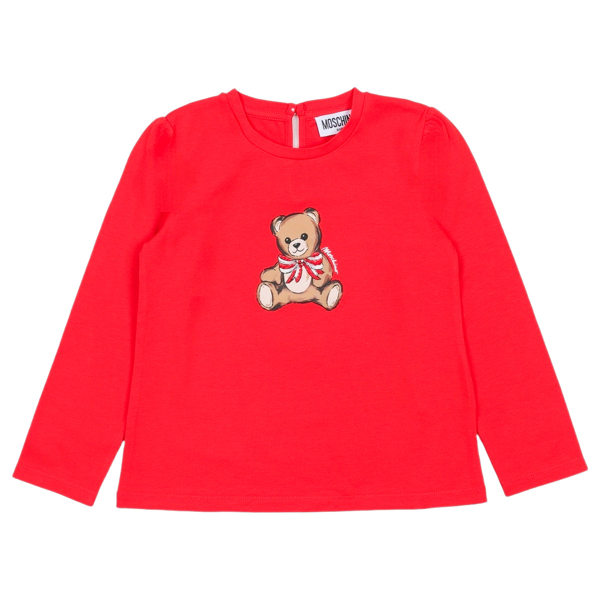 Moschino Red Teddy Bear-Print Puffy Long-Sleeve Regular-Fit Blouse