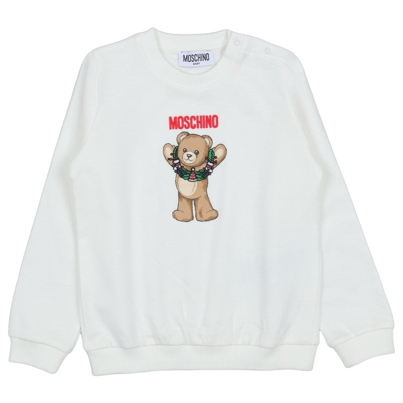Moschino White Bear Logo Embroidered Full Sleeve Shirt