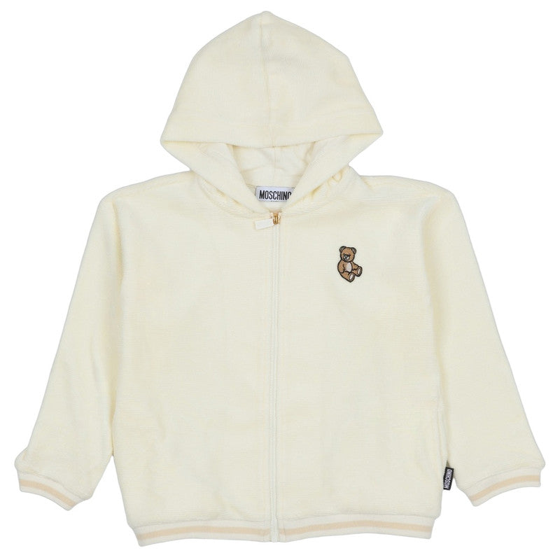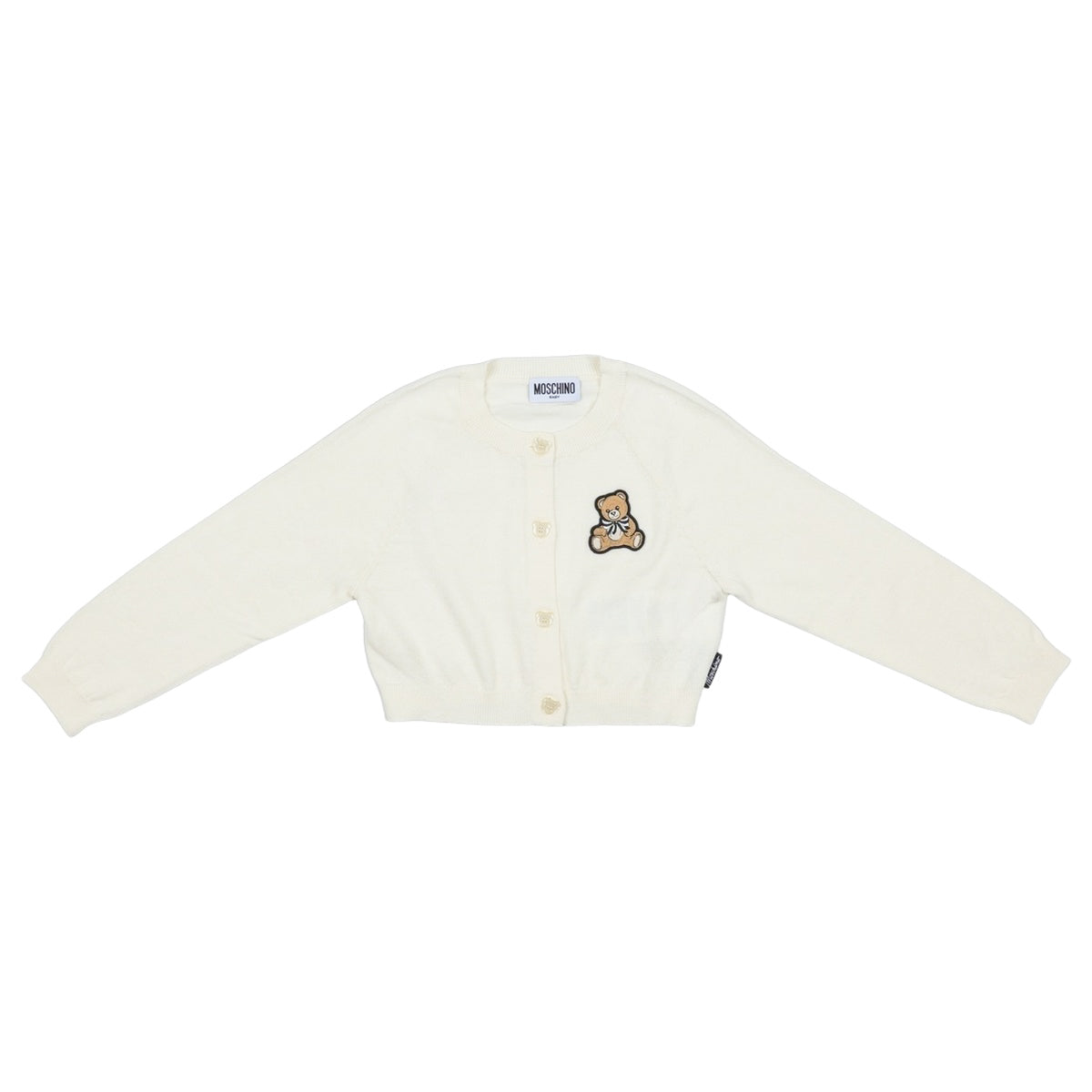 Moschino Off White Teddy-Embroidered Knitted Cardigan