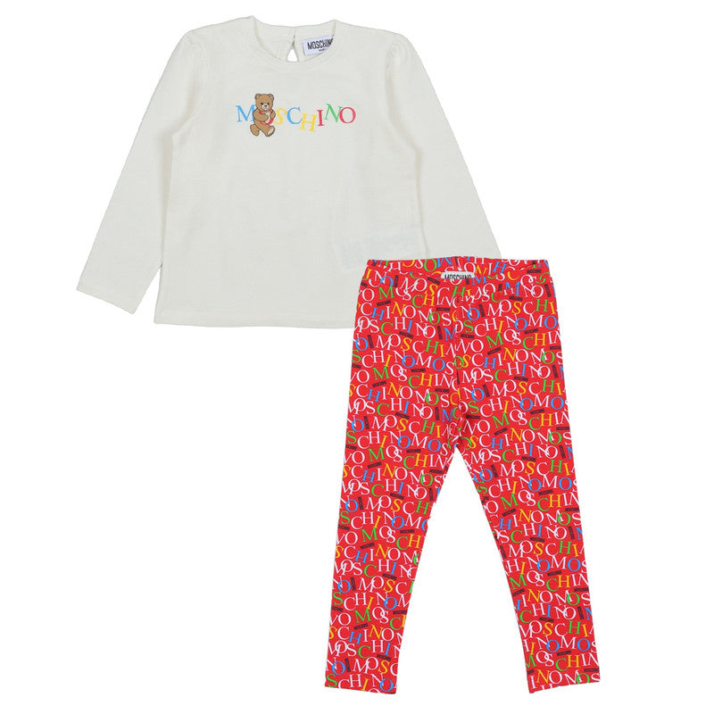Moschino Pink Long-Sleeve T-Shirt & Blue Teddy Bear Denim Set